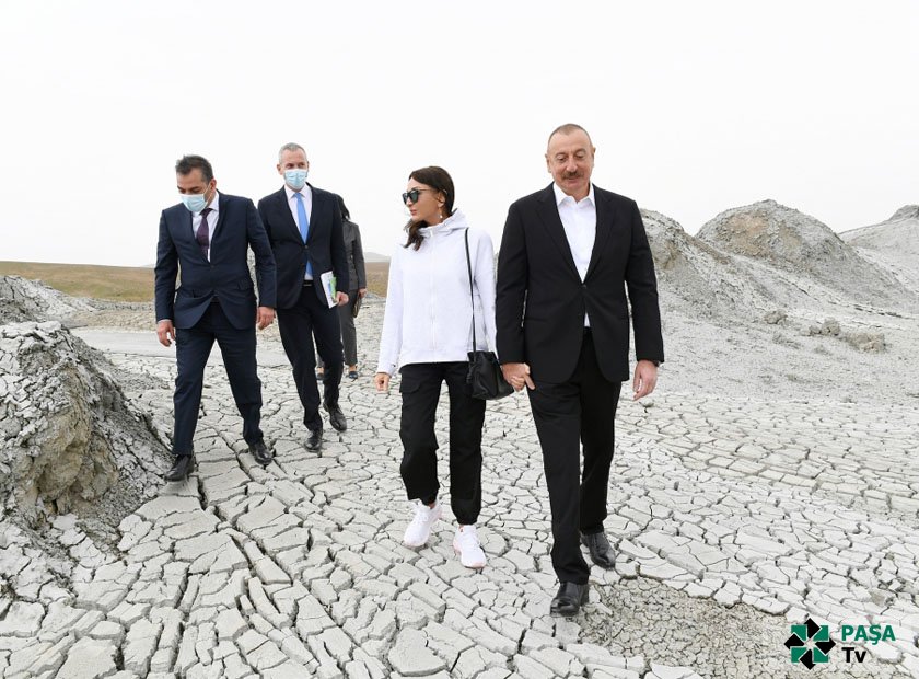 Prezident İlham Əliyev və birinci xanım Mehriban Əliyeva vulkanların yerləşdiyi ərazini gəzdilər.